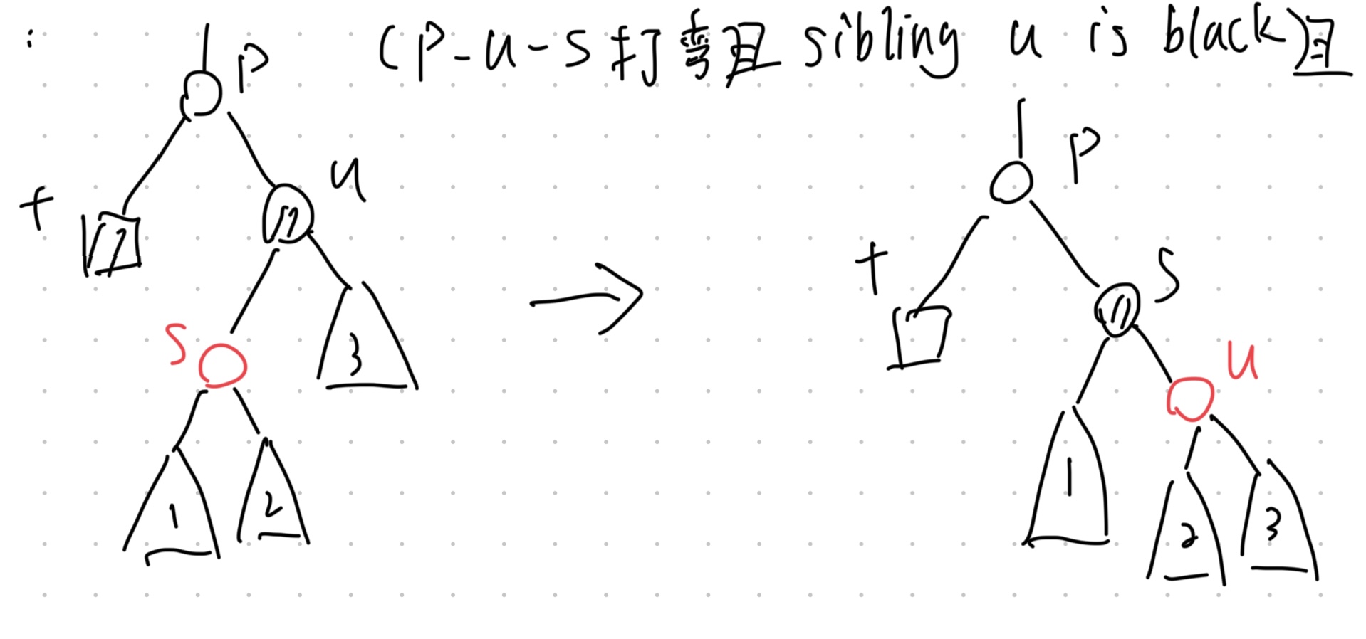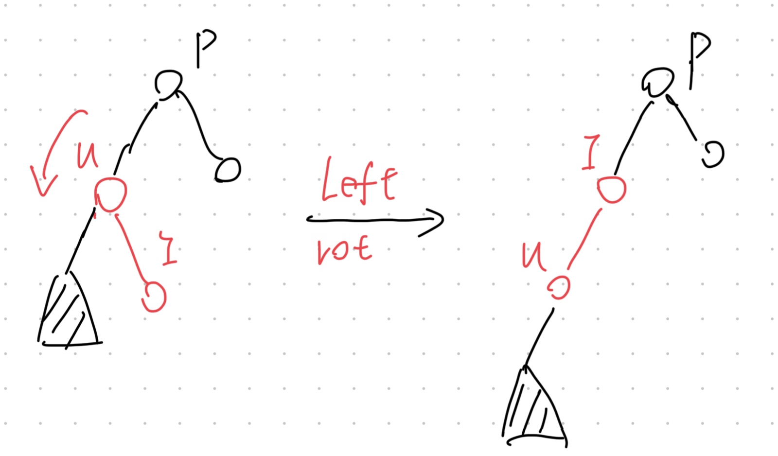 - 1.Perform a Left Rotation on the parent $u$ to turn it into the case 2-2-1.