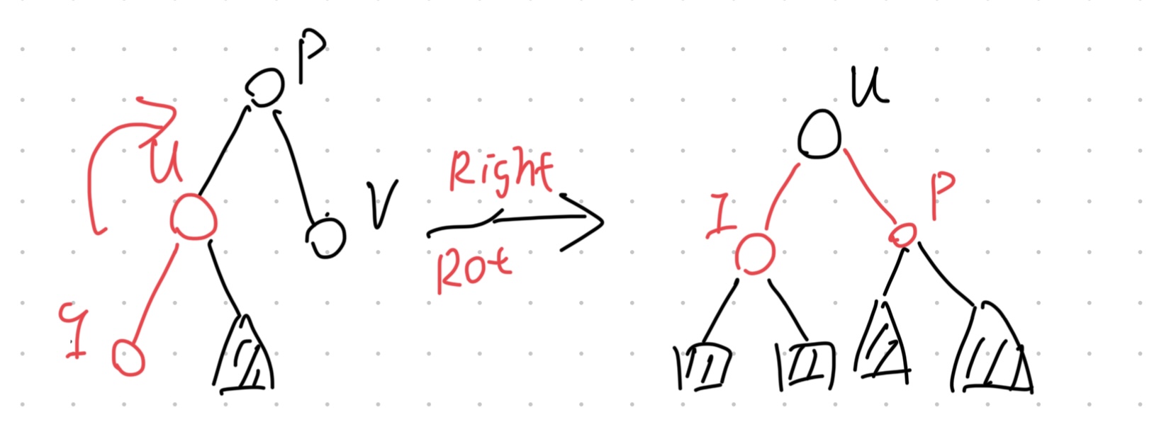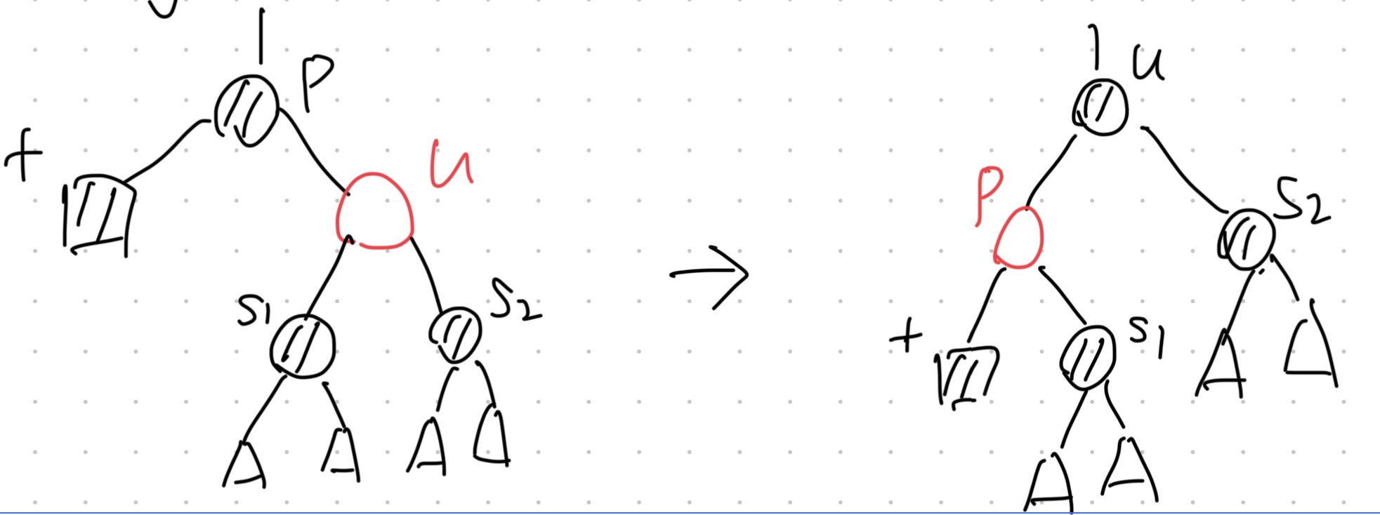 case 2-2-2: The inserted node $I$ is the right child of the parent $u$