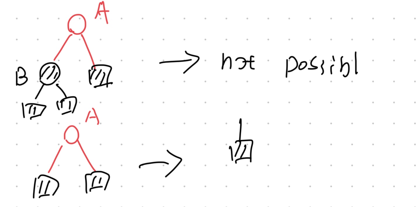 - If we only replace $A$ with a NULL node, the balance property of the RBT will not be restored due to the changes of the black-heights of the Tree.