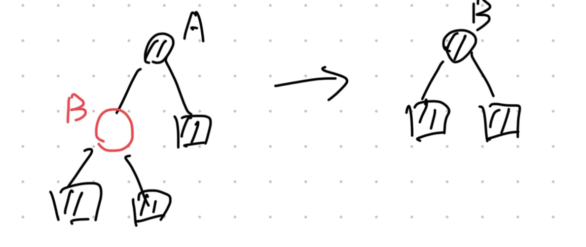- If the deleted node has a red child, it can only be the situation like the above picture.