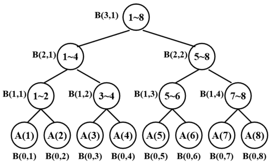 B(h, i) := B(h - 1, 2i - 1) + B(h - 1, 2i)