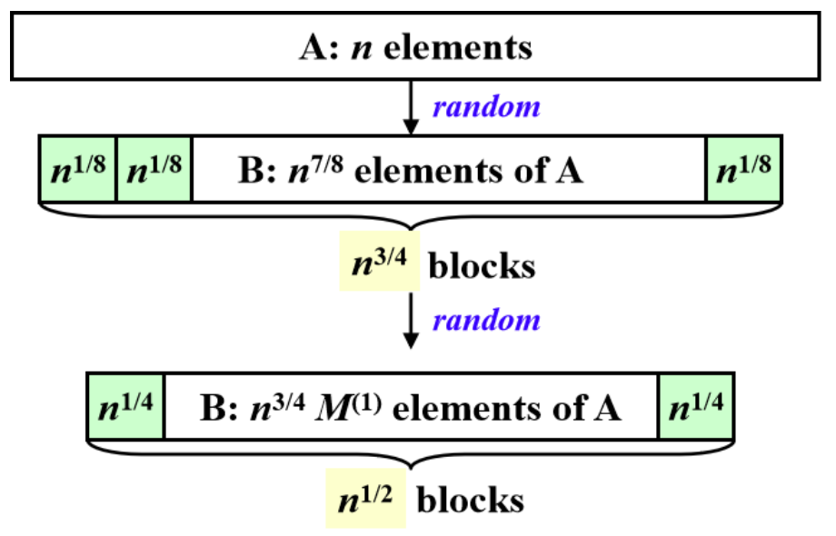 - 5.Divide the set into $n^\frac{1}{2}$ parts,each with size $n^\frac{1}{4}$.